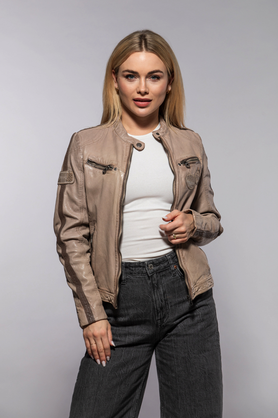 Béžová kožená bunda GWLiziya
