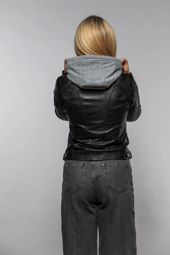 Černá kožená bunda s kapucí MWAxila DB