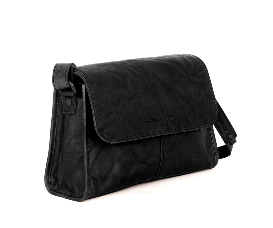 Černá kožená kabelka s klopou SPIKES & SPARROW