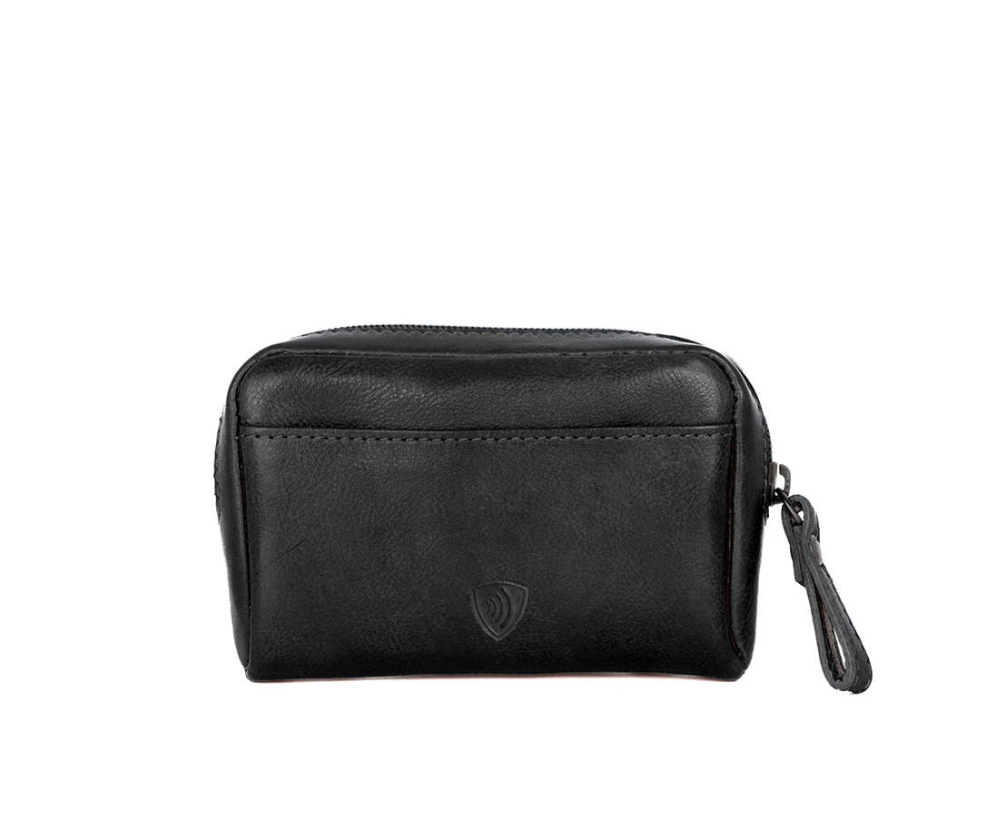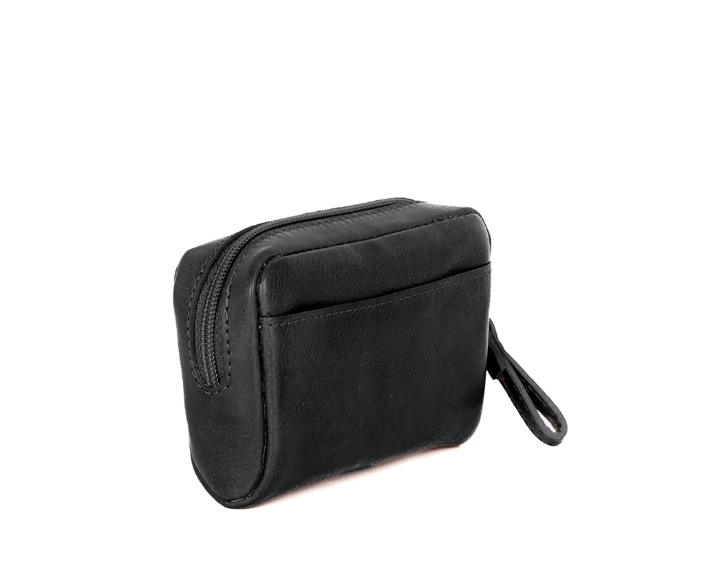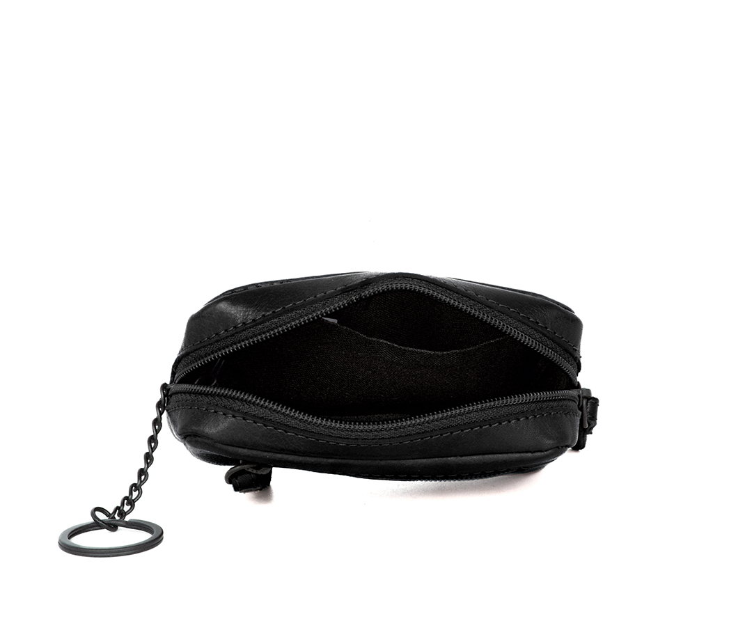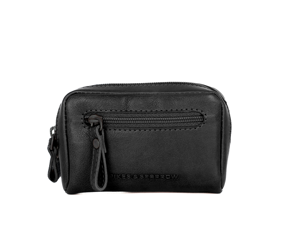 Černá kožená peněženka/klíčenka na zip SPIKES & SPARROW