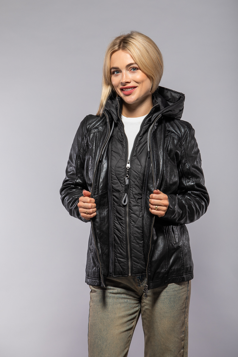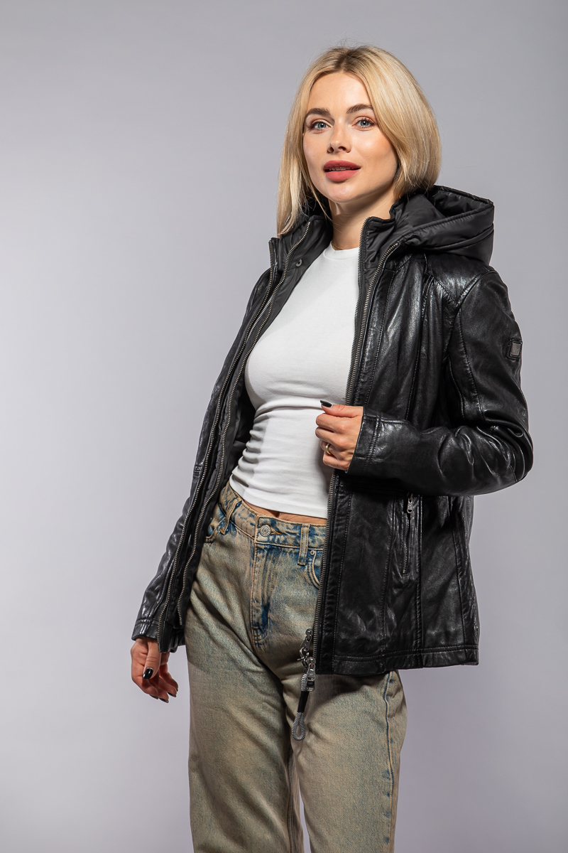 Dámská černá prodloužená bunda s kapucí TAJA DB