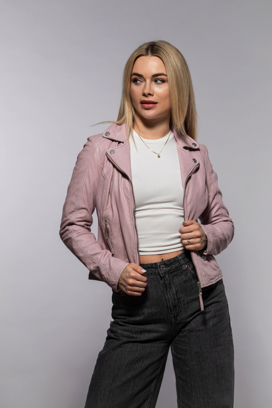 Dámská růžová kožená bunda MWBajah