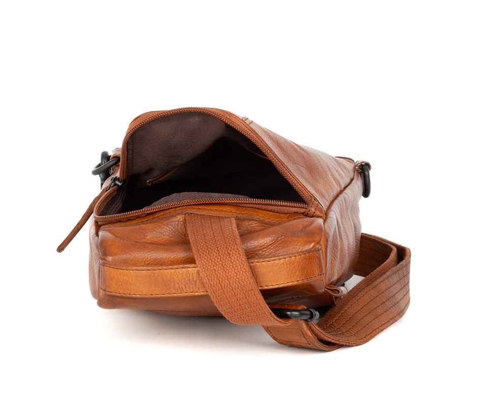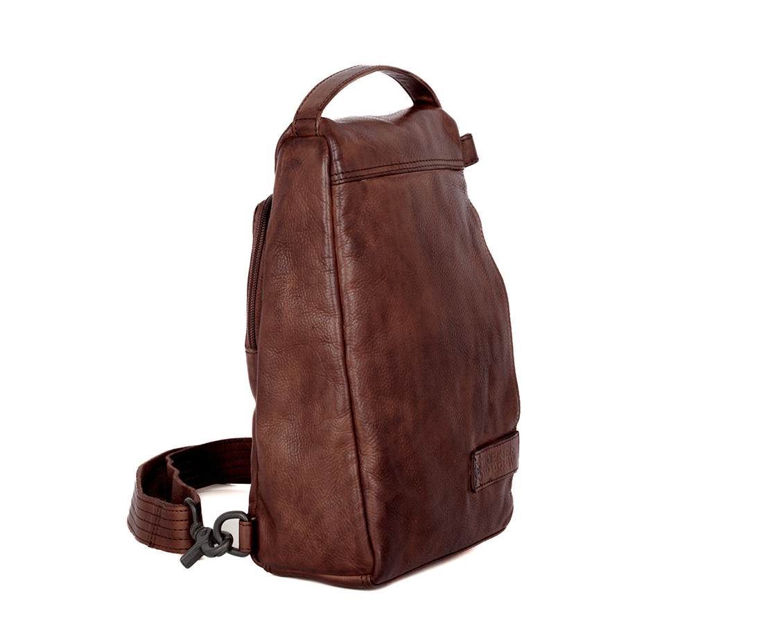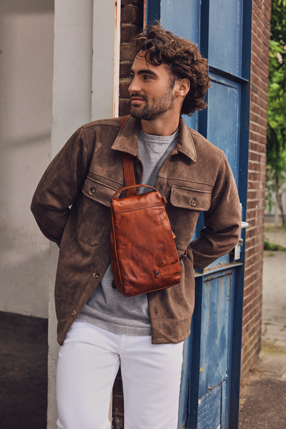 Kompaktní, praktická a překvapivě chytře navržená: kožená taška Raff v barvě hnědé je navržena pro aktivní životní styl. Tuto tašku odlišuje možnost použití zadní kapsy jako hlavního oddílu, díky čemuž budou vaše věci bezpečně uloženy blízko těla. Na horní straně tašky se nachází praktické poutko na brýle, ideální pro nošení na cestách. Na přední straně je integrována skrytá vertikální kapsa na zip pro věci, ke kterým potřebujete rychlý přístup. Taška Raff kombinuje funkčnost s výrazným, moderním designem.