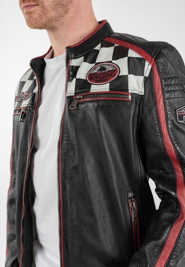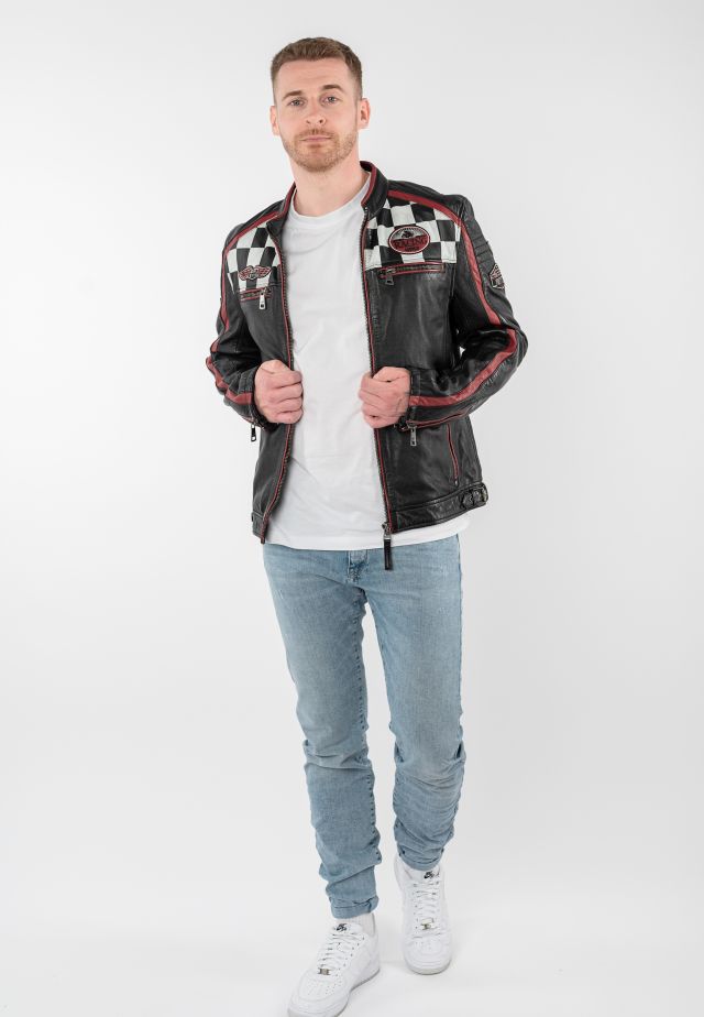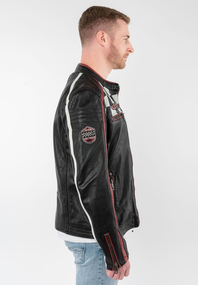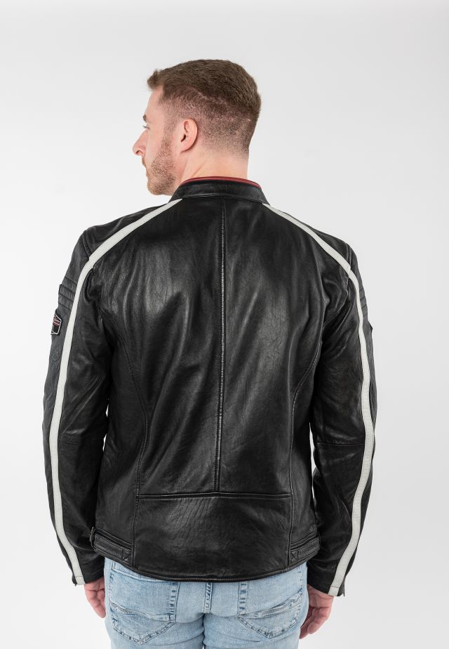 Pánská černá kožená biker bunda MMFynn SF