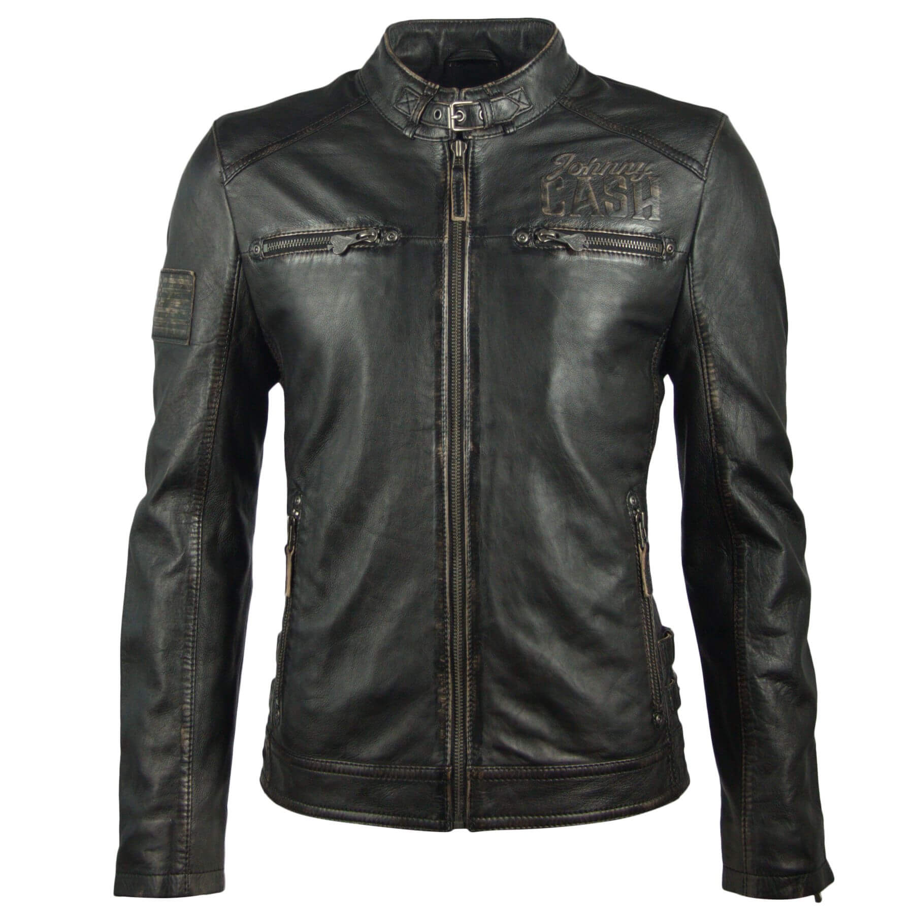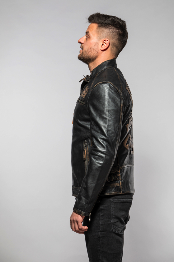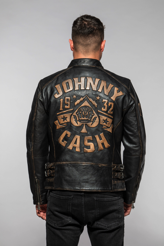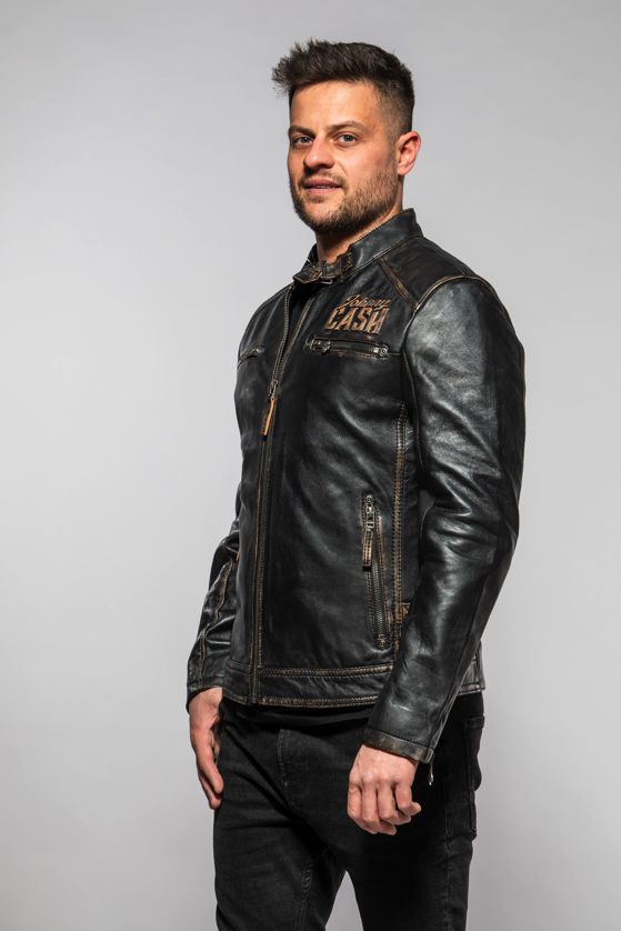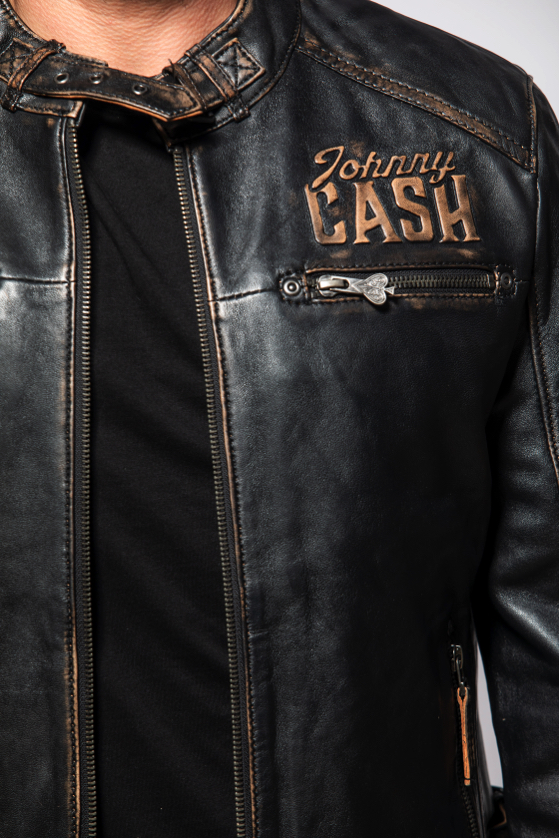 Pánská černá kožená bunda Johny Cash