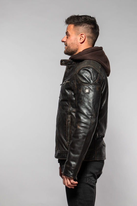 Pánská kožená bunda MMWanjox DB v barvě Vintage Black