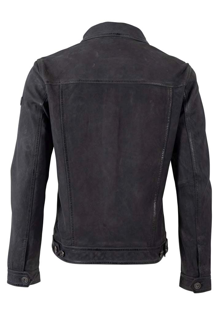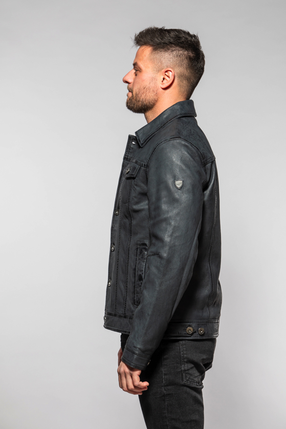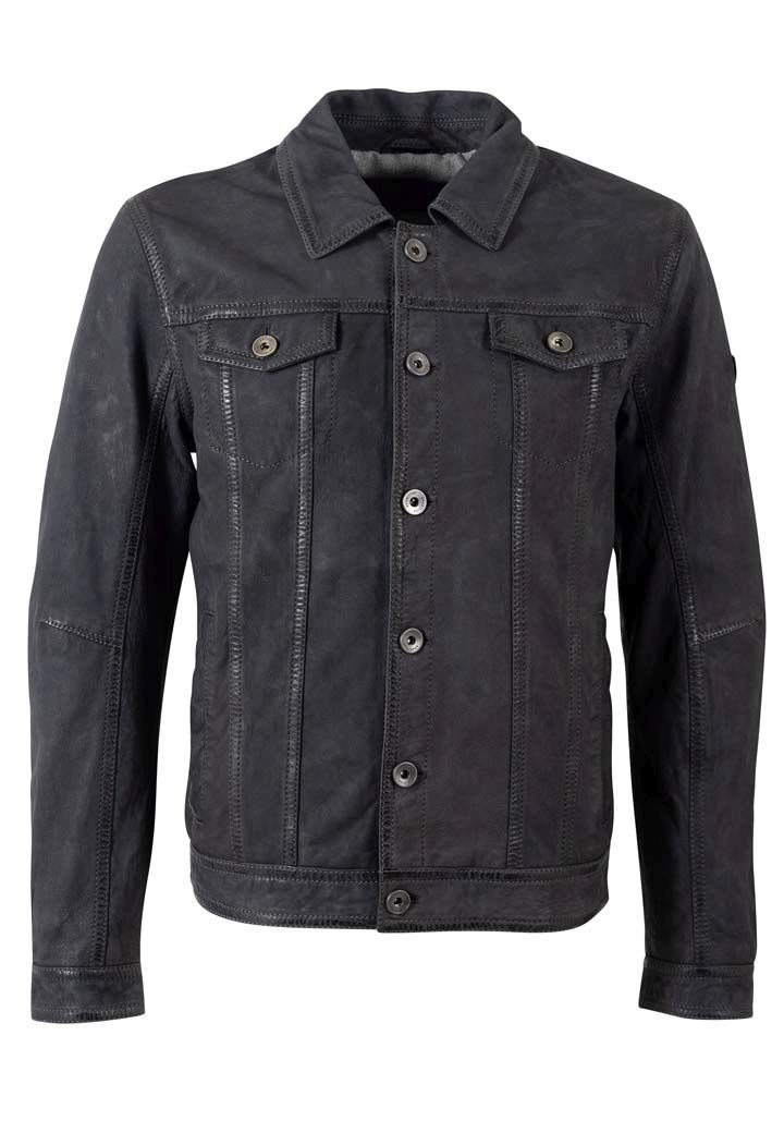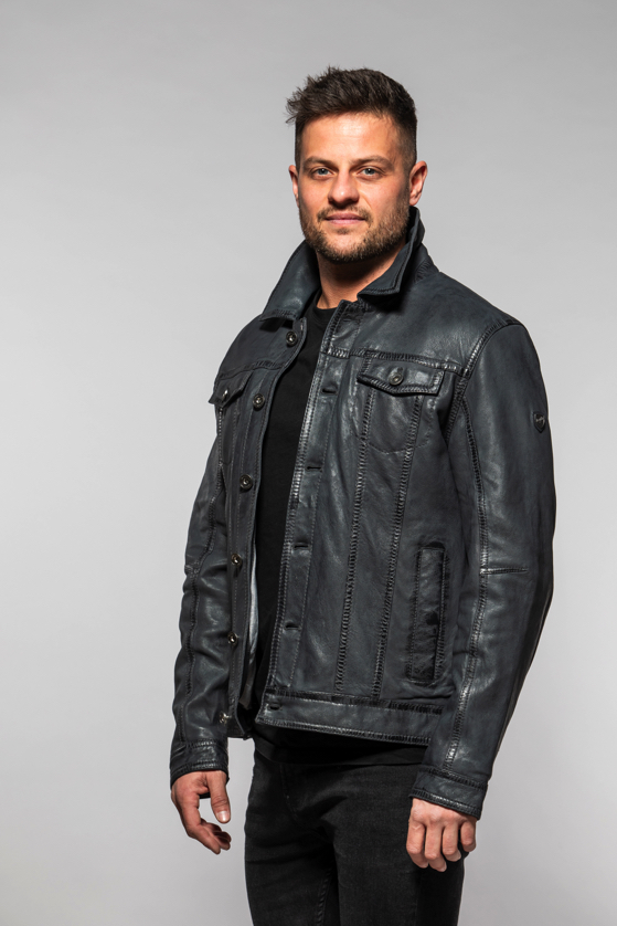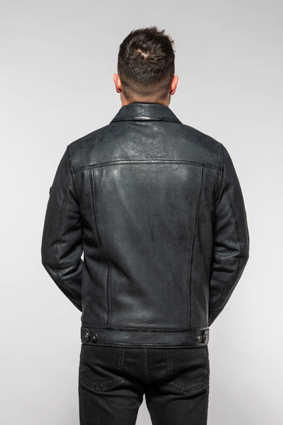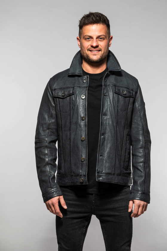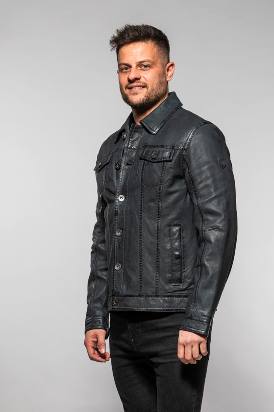 Pánská tmavě modrá krátká kožená bunda MMEddo