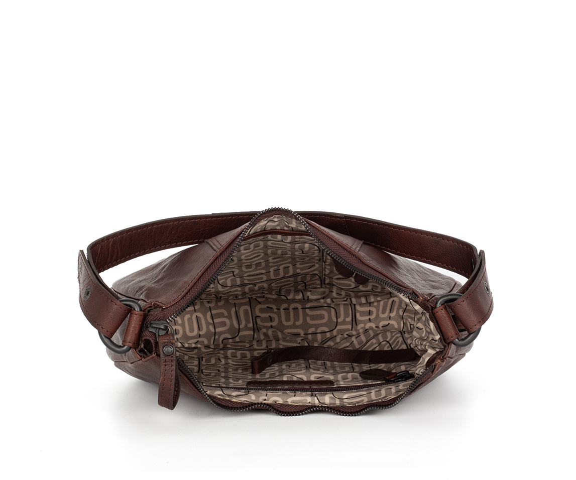 Riley je naše inovativní taška přes rameno s výrazným kulatým tvarem, který připomíná sedlovou brašnu. Má praktickou boční kapsu na zip a dvě přední boční kapsy, z nichž jedna má vsuvnou kapsu na telefon. Dodává se s odděleným dlouhým popruhem, který je odnímatelný, takže tuto tašku přes rameno snadno proměníte v crossbody.