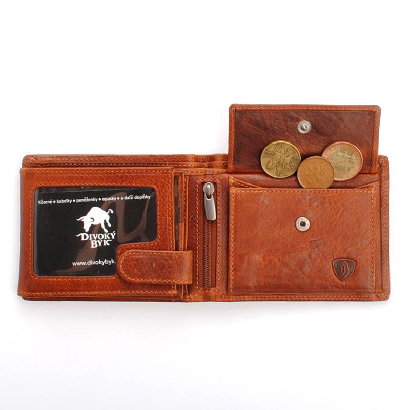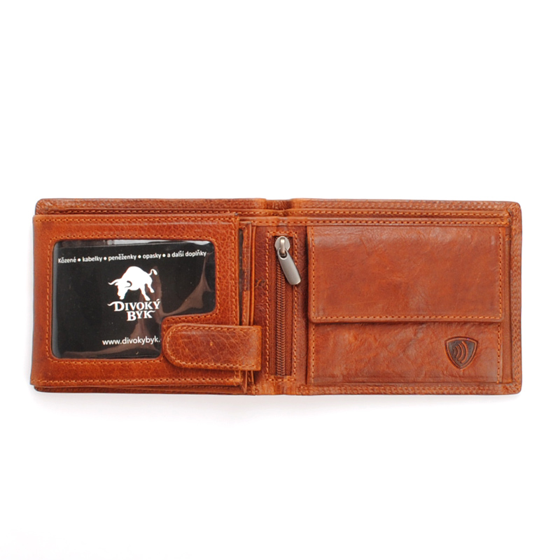 Velká cognac pánská kožená peněženka DIVOKY BYK