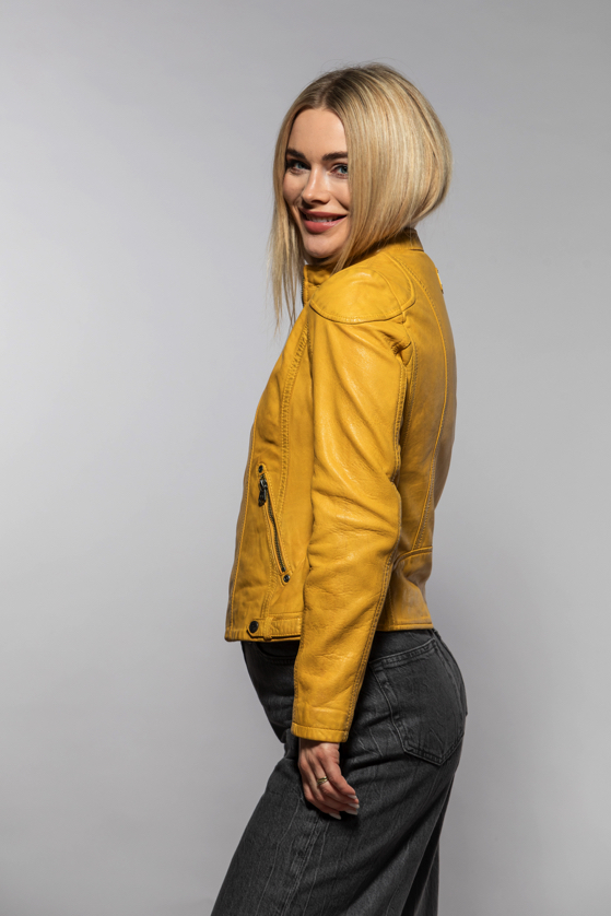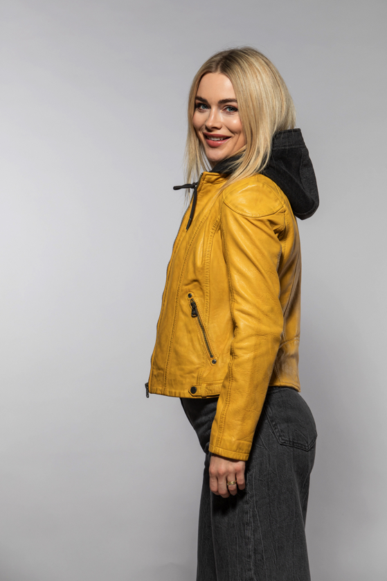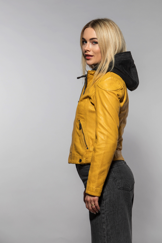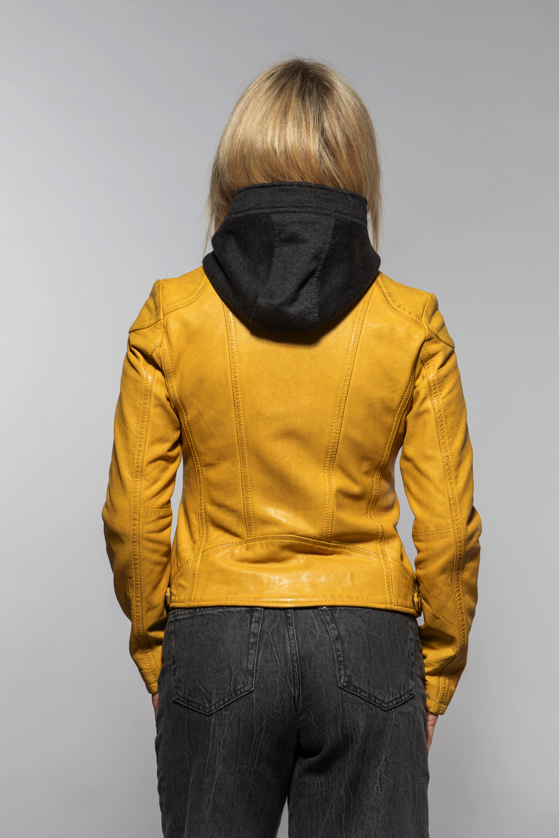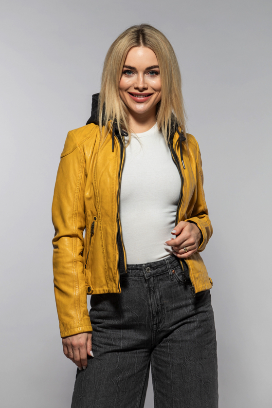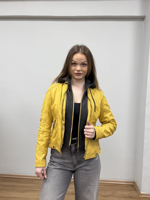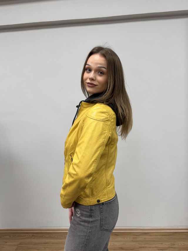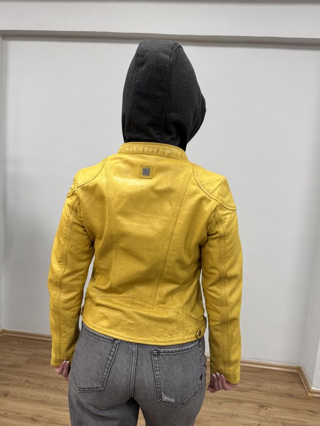 Žlutá kožená bunda s kapucí MWXammy DB